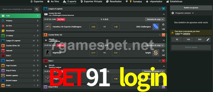 O bet91 login oferece uma grande seleção de opções de apostas em e-sports com probabilidades competitivas